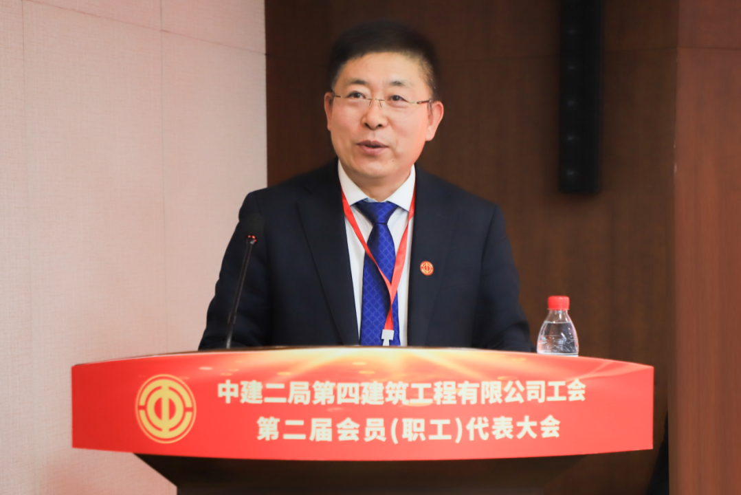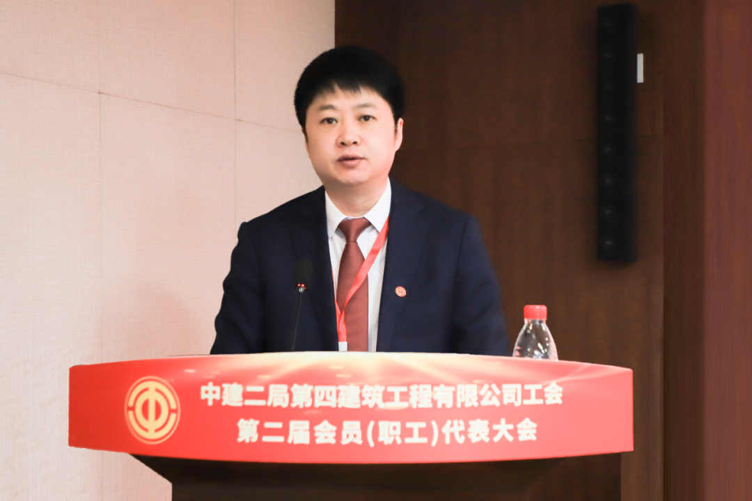杜建波代表中建二局工會向大會的召開予以祝賀。他表示,四公司工會堅(jiān)持以習(xí)近平新時(shí)代中國特色社會主義思想為指導(dǎo),深入學(xué)習(xí)貫徹習(xí)近平總書記重要講話和指示批示精神,始終堅(jiān)持融入中心、服務(wù)大局,在工會系統(tǒng)多個(gè)領(lǐng)域起到示范帶頭作用。四公司工會和廣大工會干部要不忘初心、牢記使命,強(qiáng)化思想政治引領(lǐng),持續(xù)深化中國工會十八大精神的實(shí)踐運(yùn)用,把牢工會工作正確方向。深刻把握工會組織在黨和國家工作大局中的使命任務(wù),緊密圍繞國家重大戰(zhàn)略、重大工程、重大項(xiàng)目、重點(diǎn)產(chǎn)業(yè),聚焦局“高品質(zhì)履約年”各項(xiàng)目標(biāo)任務(wù),履行央企社會責(zé)任,深化產(chǎn)業(yè)工人隊(duì)伍建設(shè)改革,堅(jiān)持服務(wù)職工為本,滿足職工群眾對美好生活的需要,提升廣大職工幸福指數(shù),提高工會工作能力和水平。