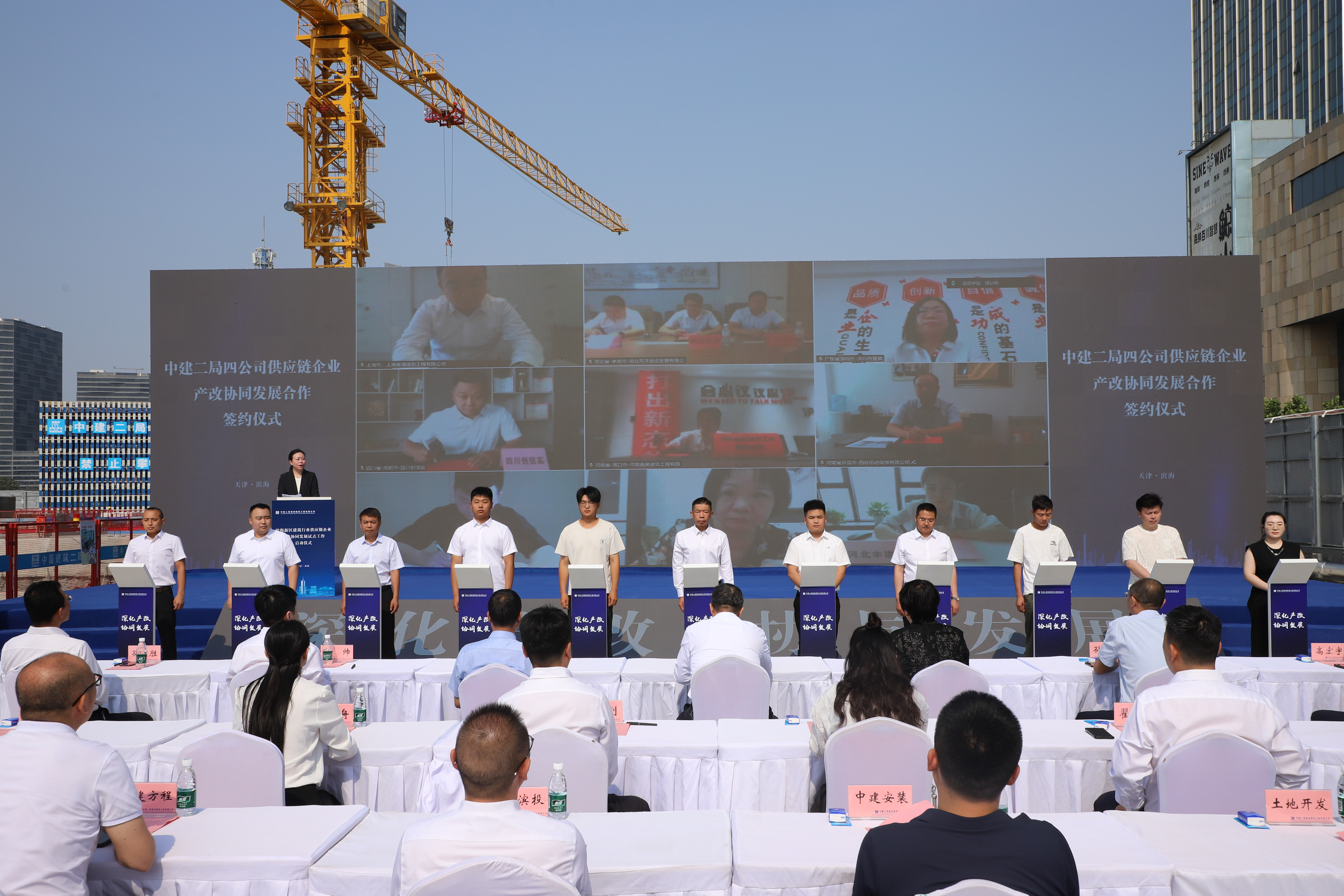 為進(jìn)一步推動(dòng)產(chǎn)改走深走實(shí),激發(fā)產(chǎn)改活力,打造一支知識(shí)型、技能型、創(chuàng)新型的高素質(zhì)產(chǎn)業(yè)工人隊(duì)伍,6月12日,天津市濱海新區(qū)建筑行業(yè)供應(yīng)鏈企業(yè)產(chǎn)改協(xié)同發(fā)展試點(diǎn)工作啟動(dòng)儀式在中建二局四公司天津塘沽南站城市更新濱河A地塊項(xiàng)目舉行。