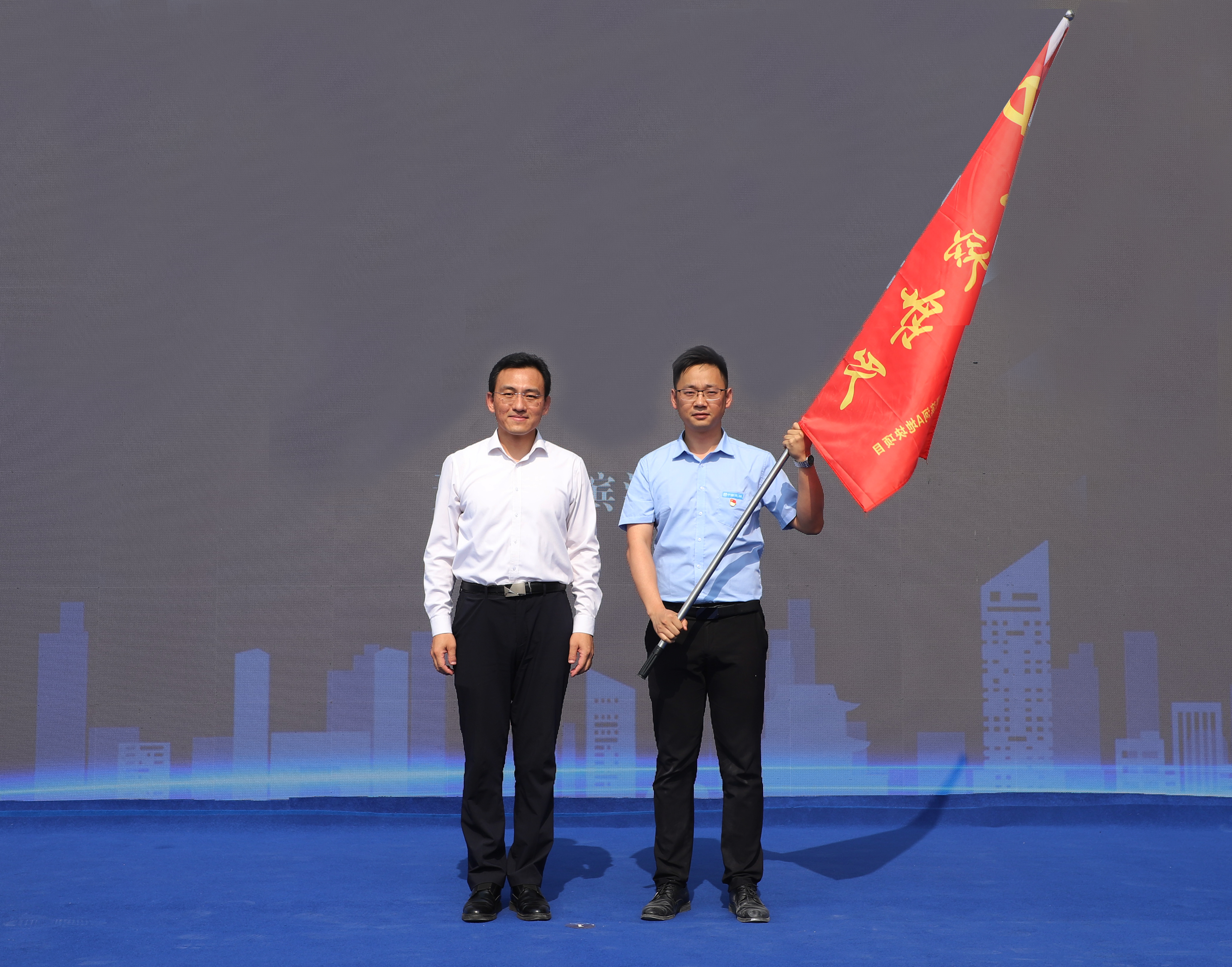 孫明勝為項(xiàng)目黨員突擊隊(duì)授旗